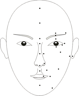 :请根据你脸上痣的大致位置对照下图,将鼠标放在黑点上面,两侧即可自动显示结果。